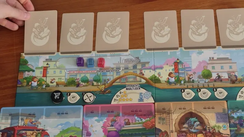 De chefs selecteren van links naar rechts ingrediënten naar keuze conform hun draagcapaciteit. Als de winkel uitverkocht is maar jouw meeple nog niet bediend werd, krijg je een soepfiche als troostprijs. Deze is maar één punt waard, maar kan wel als substituut dienen voor elk ander bestanddeel in een maaltijd.