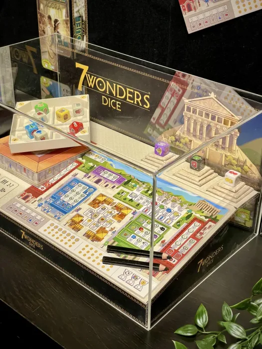 Guide one of the seven largest cities of antiquity to prosperity in 7 Wonders Dice. During the game, you will construct a wonder that defies time, make scientific advances, develop commerce, manage your resources, and handle your gold reserve prudently — all while keeping an eye on neighboring cities since ignoring them has a heavy price!