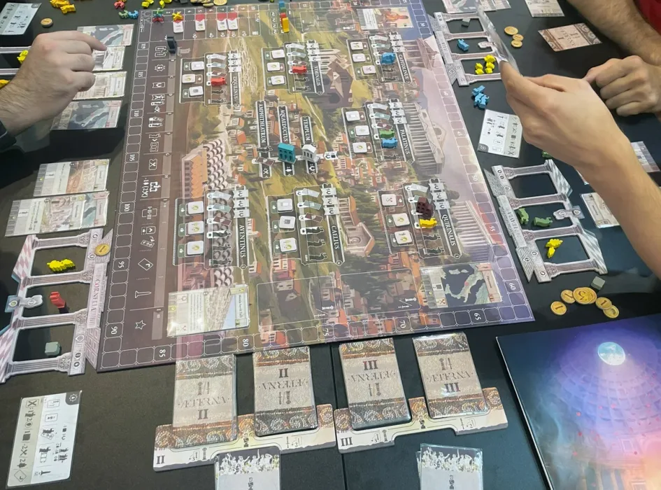 In Æterna, you take the role of a Roman Gens (family) that will try to increase its prestige through three eras: the Roman Kingdom, the Roman Republic, and the Roman Empire.