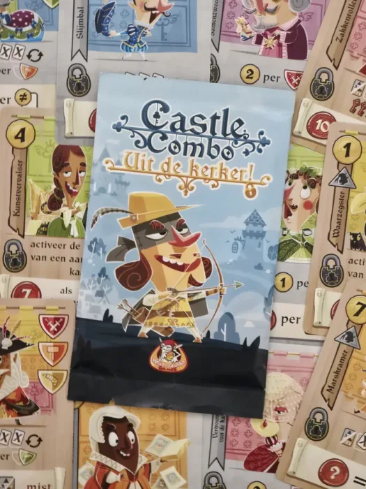 Castle Combo: Uit De Kerker! is een uitbreiding voor het kaartspel Castle Combo en introduceert extra spanning, nieuwe karakters en slimme combinaties. Met nieuwe kerkerkaarten en speciale effecten krijg je meer manieren om punten te scoren en timing te manipuleren, terwijl de spelregels toegankelijk blijven. Alleen te gebruiken in combinatie met het basisspel Castle Combo.