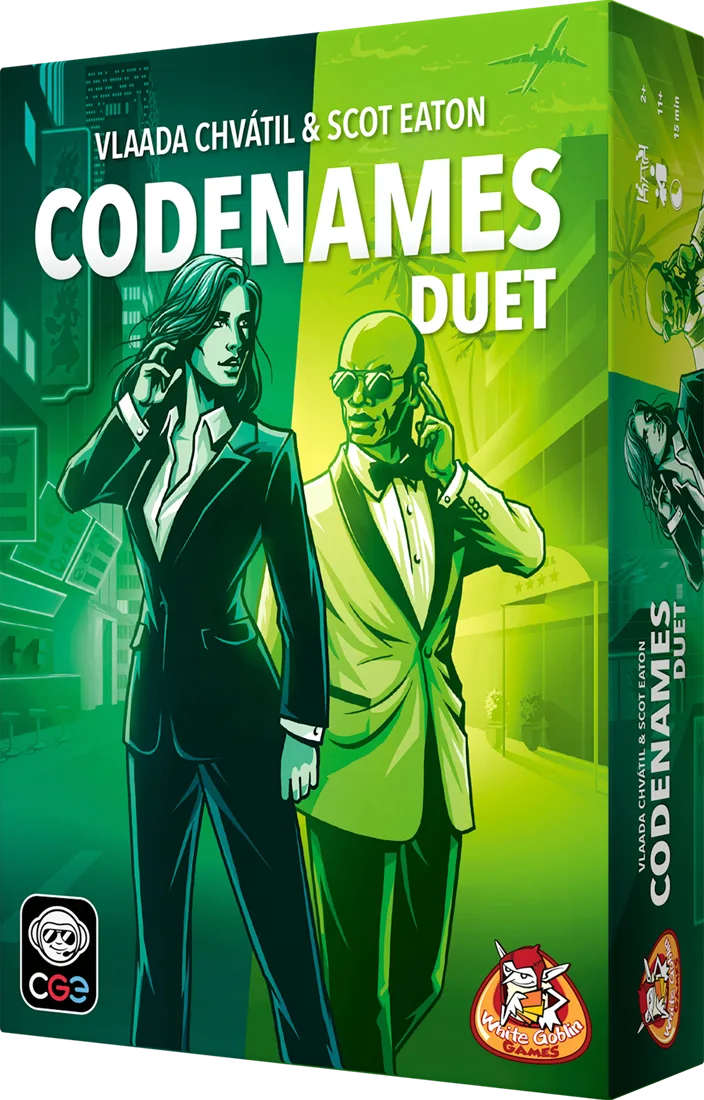 Jij en je partner zijn op een geheime missie in een drukke stad. Je moeten contact maken met 15 spionnen en de vijandelijke huurmoordenaars ontwijken. Jij weet met welke spionnen je partner veilig kan contacteren. Jouw partner weet dat voor jou. Geef elkaar aanwijzingen van één woord die op meerdere woorden slaan en probeer om alle spionnen te vinden, voordat de tijd op is. Codenames Duet is een coöperatief spel voor twee (of meer) spelers.
