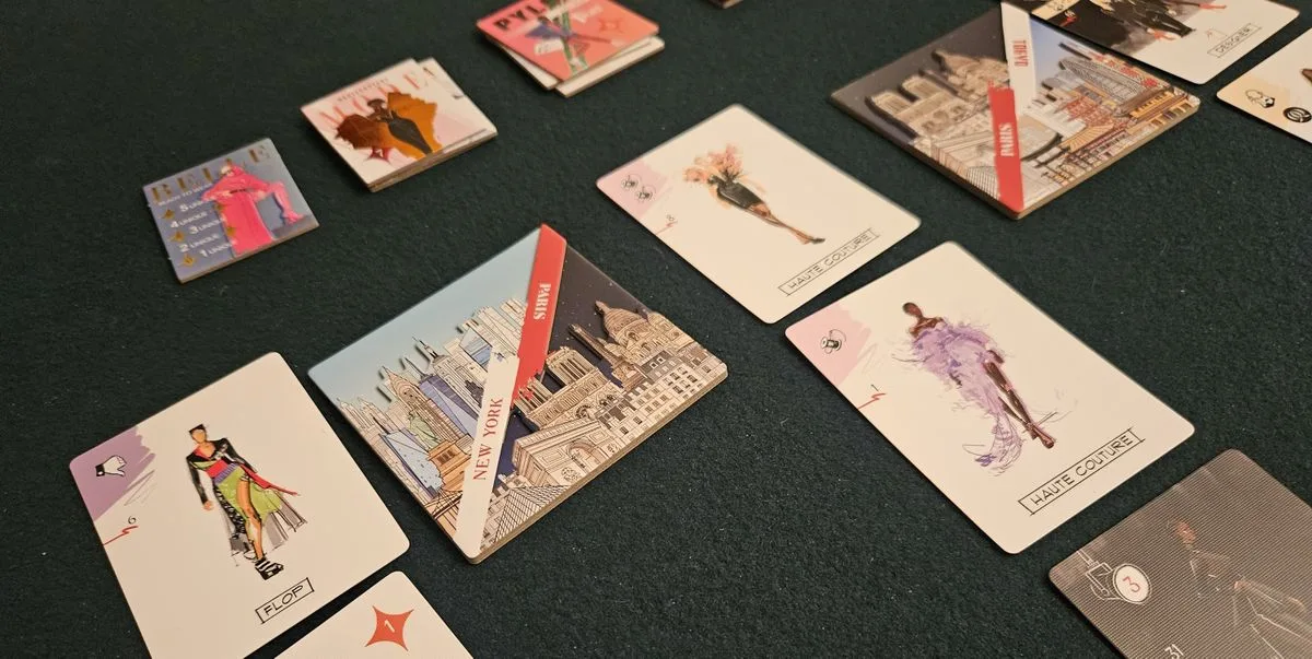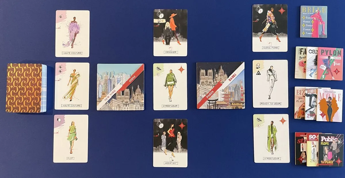 In Couture, players seek to win cards through auctions in New York, Paris, and Tokyo. New cards are available to draft in each city, allowing the winning player first pick of Iconic Poses, Signature Walks, a personal Glam Squad, and much more.