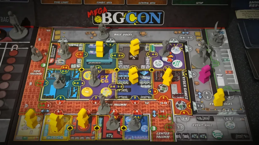 The Mega Boardgame Convention is packed to the brim with excited attendees, all eagerly anticipating the hot new game releases from the best publishing companies in the industry. They’re SO excited, in fact, that they refuse to leave the convention floor! You’ll need to create a little panic yourself if you expect to save these starry-eyed gamers from the end of Mort’s blade!