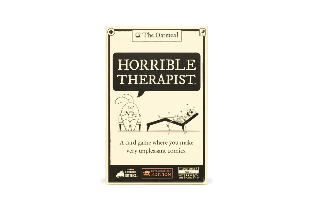 Therapy can be horrible… so there’s a game about it! Horrible Therapist is an off-the-wall party game that turns therapy into a darkly hilarious, comic-creating competition. This game brings humor, creativity, and a touch of absurdity to the table.