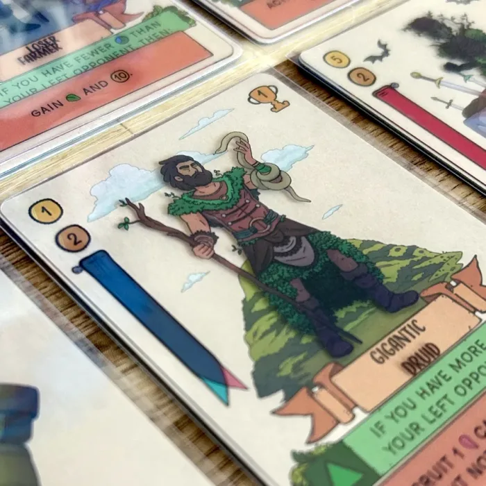 During play, each character card gives a player special actions, such as earning money, drawing more cards, and (most importantly) gaining influence in the mountain, forest, sea, and city regions of the kingdom. When a player has collected 6 influence, they may claim a region of the corresponding type, which scores them points. The player who best uses their characters in combination and gains the most points wins!