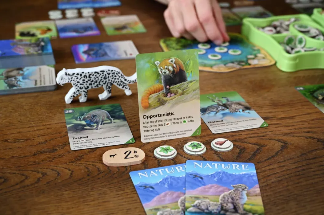 Nature is a redesign of the blockbuster Evolution to be more streamlined, more forgiving, and seamlessly expandable. The secret sauce is a modular system that allows players to create and explore a unique ecosystem each time they play.