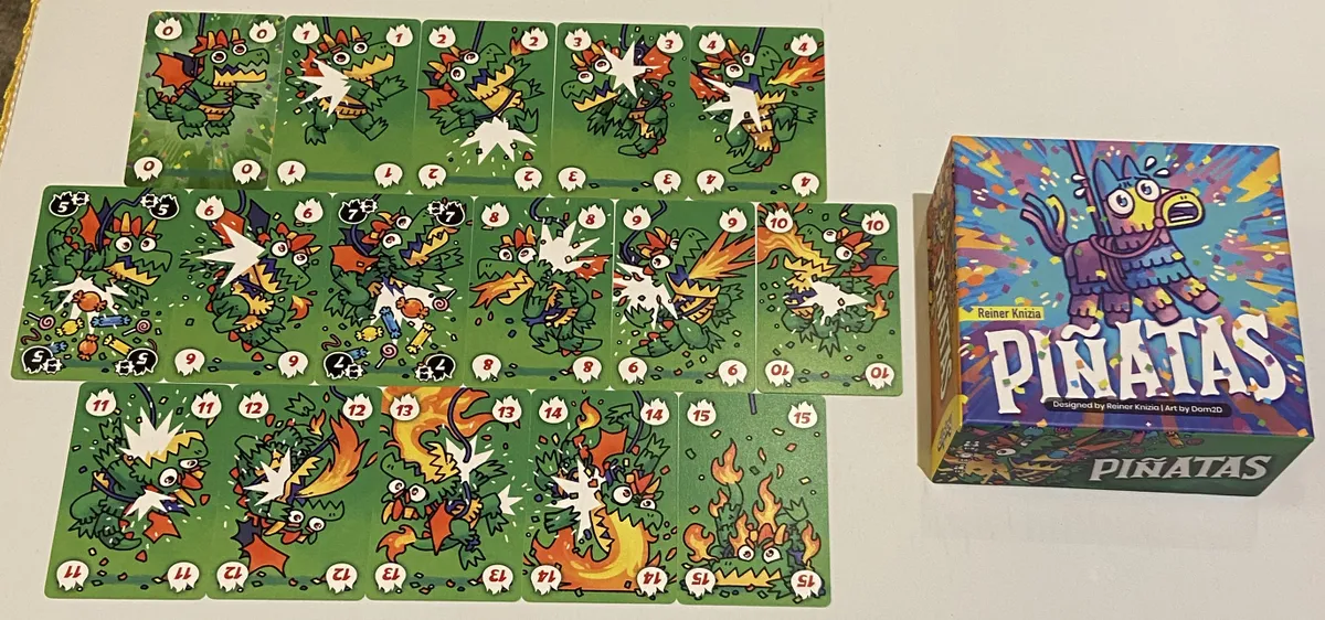 Designed by Dr. Reiner Knizia, Piñatas features a simple ruleset with his signature spin on scoring.