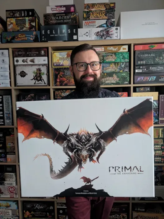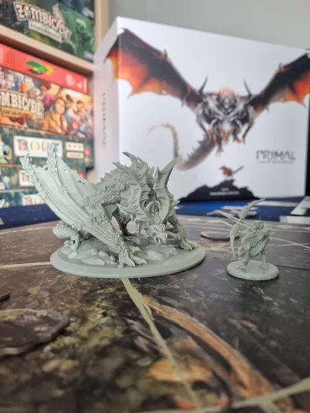 Primal: the Awakening is a fully cooperative monster hunting miniature boardgame for 1-4 players set in a fantasy world where humans struggle to survive an untamed wilderness. The game is played in a series of multiple sessions throughout an epic campaign where you will take the role of hunters fighting monstrous creatures and unveiling mysteries about their origins.