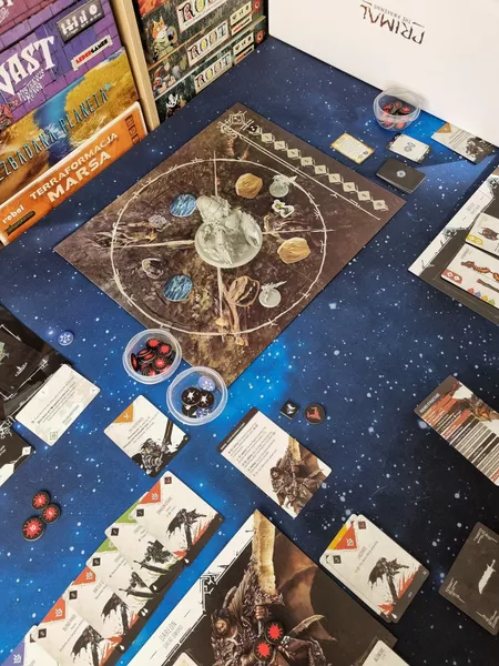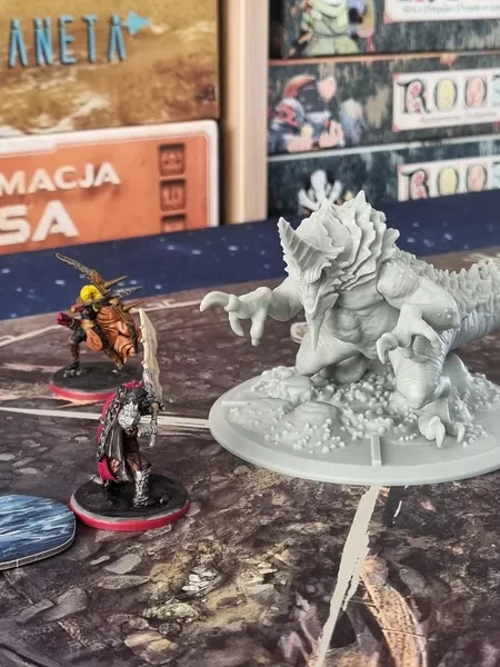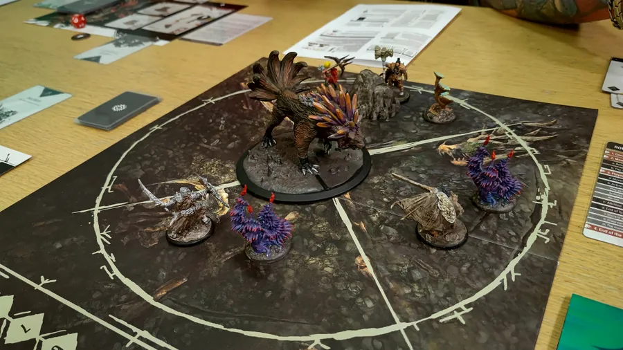 The gameplay is centred on an intense and challenging boss-fight system that combines tactical positioning on the board, hand management and cooperative play. The combat is designed to be fast paced while focusing on card combos and player interaction. Each monster is a unique challenge that hunters will have to face as a group, completing specific objectives and adopting different strategies. Monsters have their own specific deck of cards which represents their specific combat behaviour including attacks targeting specific areas on the board, special abilities, but also weaknesses and vulnerabilities that hunters can take advantage of during combat.