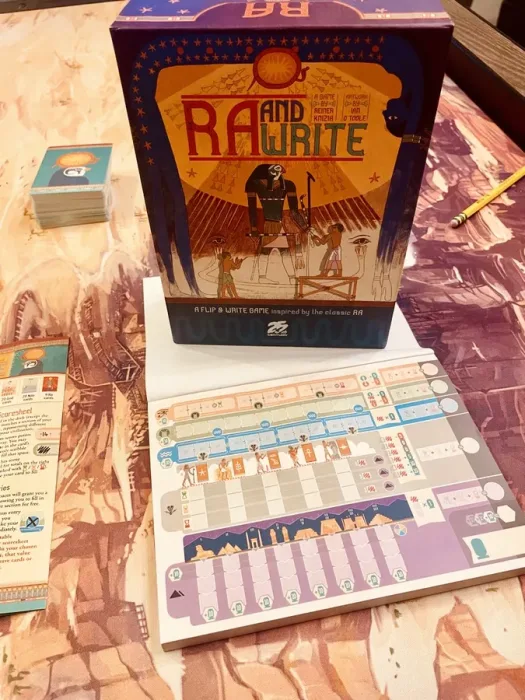 RA and Write is a flip-and-write game built upon the foundation of the classic RA from acclaimed designer Reiner Knizia. It features the same art and thematic style as the 25th Century Games new edition of the board game.