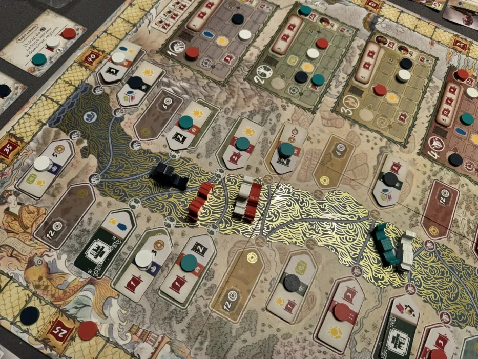 River of Gold is een toegankelijk familiespel. Het is slim en snel, met minimale wachttijd en een speeltijd van slechts één uur met 4 spelers. De spelregels zijn intuïtief en gemakkelijk te leren. In het spel bouw je aan je handelsimperium terwijl je rijkdom, glorie en wijsheid verzamelt in dit toegankelijke familiespel. In elke beurt krijg je door je dobbelsteenworp 3 unieke kansen, maar je kunt er slechts 1 kiezen; ga je bouwen langs de oever van de rivier, vaar je stroomafwaarts door de rivier van goud om je schip met vracht en goud te beladen of sluit je een waardevol contract af met een invloedrijke klant? Komt je dobbelsteenworp niet overeen met je plan, dan kun je goddelijke gunsten gebruiken om je lot te veranderen.