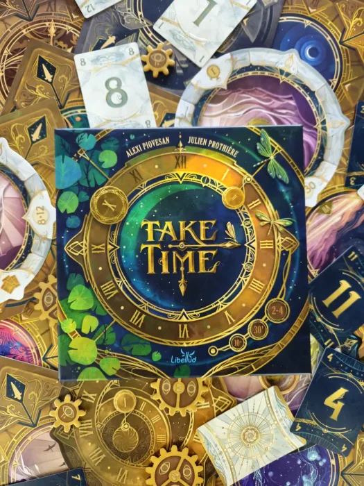 Take Time is een coöperatief spel waarin jullie de puzzels van verschillende klokken moeten oplossen. Hiervoor spelen jullie 12 kaarten gesloten rondom de klok. Jullie weten hoe de kaarten uiteindelijk verdeeld moeten zijn, maar jullie weten niet wat de anderen hebben gespeeld en mogen niet met elkaar praten. Het spel bevat 40 klokken met oplopende moeilijkheidsgraden en verschillende regels. Bereid je voor op een prachtige reis door de tijd!
