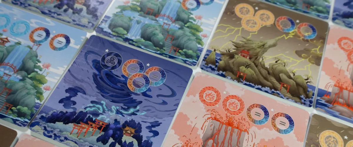 The tile-placement in Tatsumi has a puzzly yet satisfying feel through a clever combination of engine-building, instant scoring, and elemental inspired end game tile-placement bonuses for you to maximize.