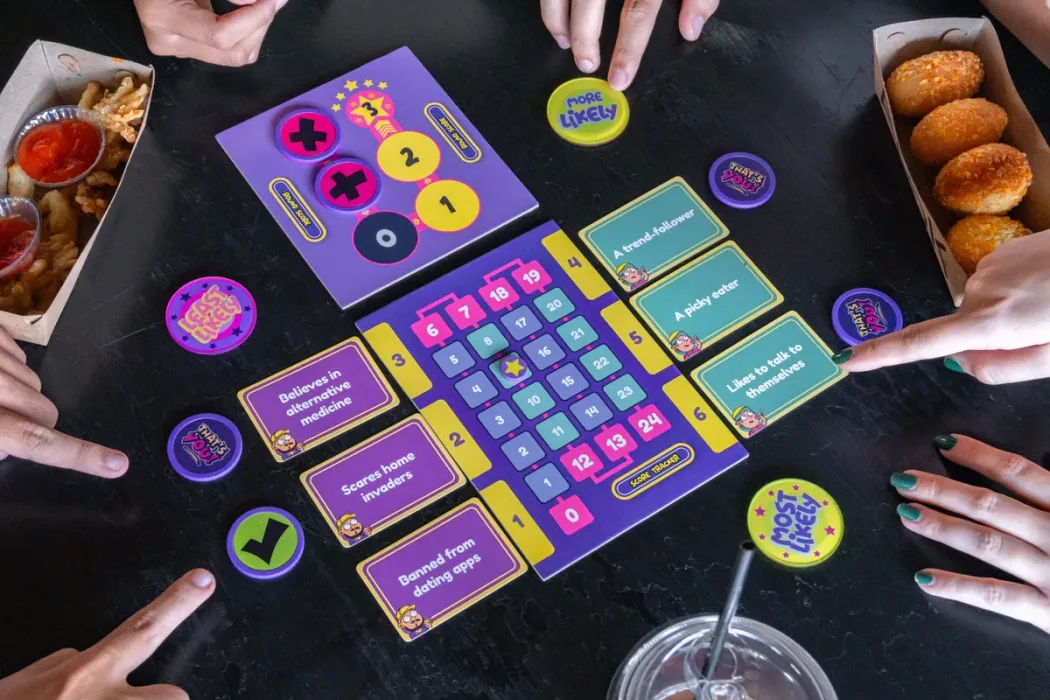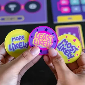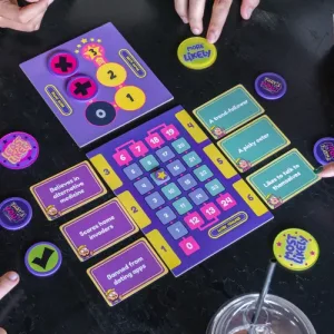 In this game, a Clue Giver will be secretly assigned one out of six traits on the table that she will have to indicate to the other players. The Clue Giver must clue in the other players by indicating which among them are the most likely and least likely to be associated with the trait. The players then work together to try and interpret the clues and figure out which trait was selected. If they succeed, they get points!