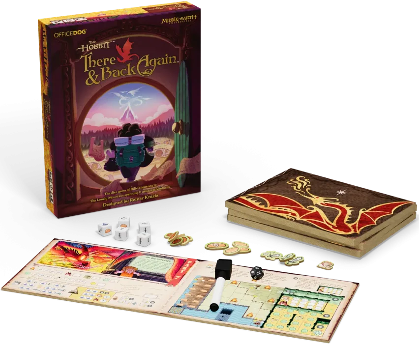 The Hobbit: There & Back Again is a competitive adventure game in which players draft dice to make pathways, collect resources, and perform actions that help them to reach their chapter goal.