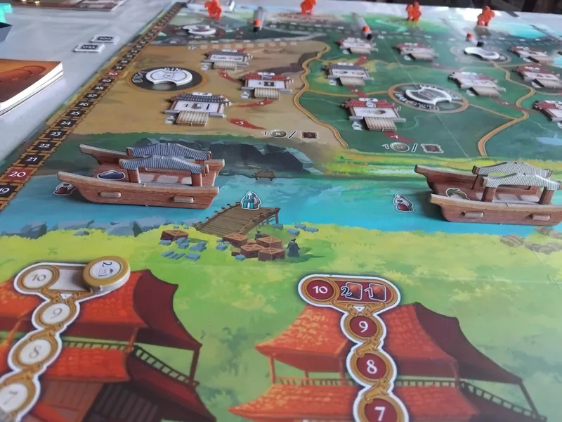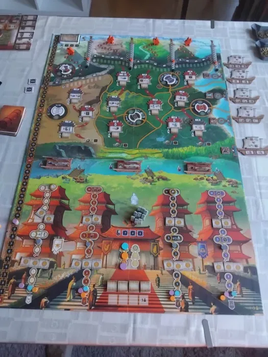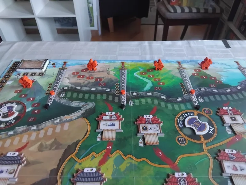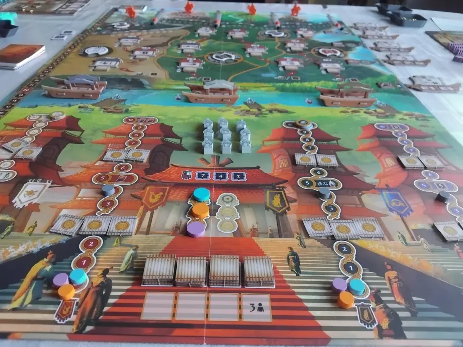 The game lasts four rounds in which you install Governors in the regions and bolster the power of rival ruling houses, thus gaining their favor. You also sell goods to merchant ships that sail the Chinese shores to gain wealth and other benefits. Nevertheless, you must not forget about the nomadic warriors who pose a constant threat on the northern borders of the seven kingdoms. Thus, you must train soldiers and build walls and towers to weaken the invaders and protect your interests, earning prestige in the process.