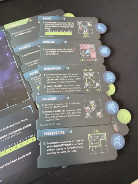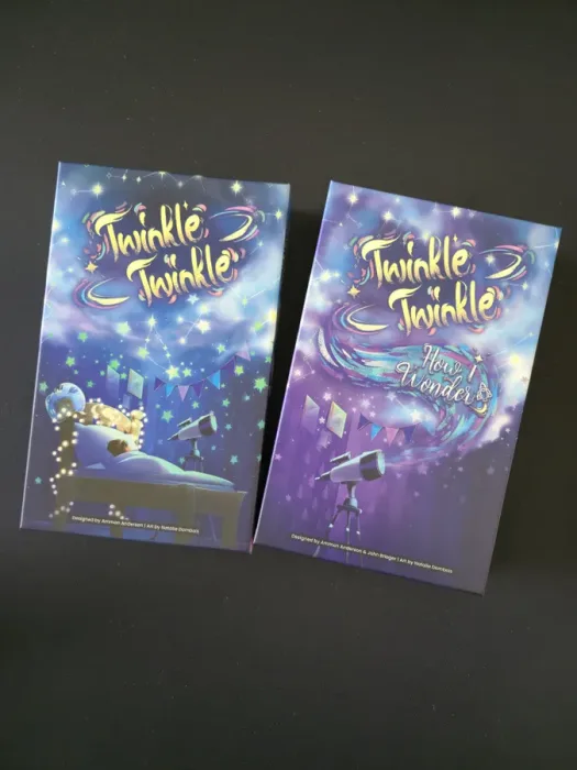 How I Wonder Expansion: Add Wormholes, Nebulae, Galaxies, Moons, and Rocketships tiles to your copy of Twinkle Twinkle. Each new tile type has two scoring conditions.