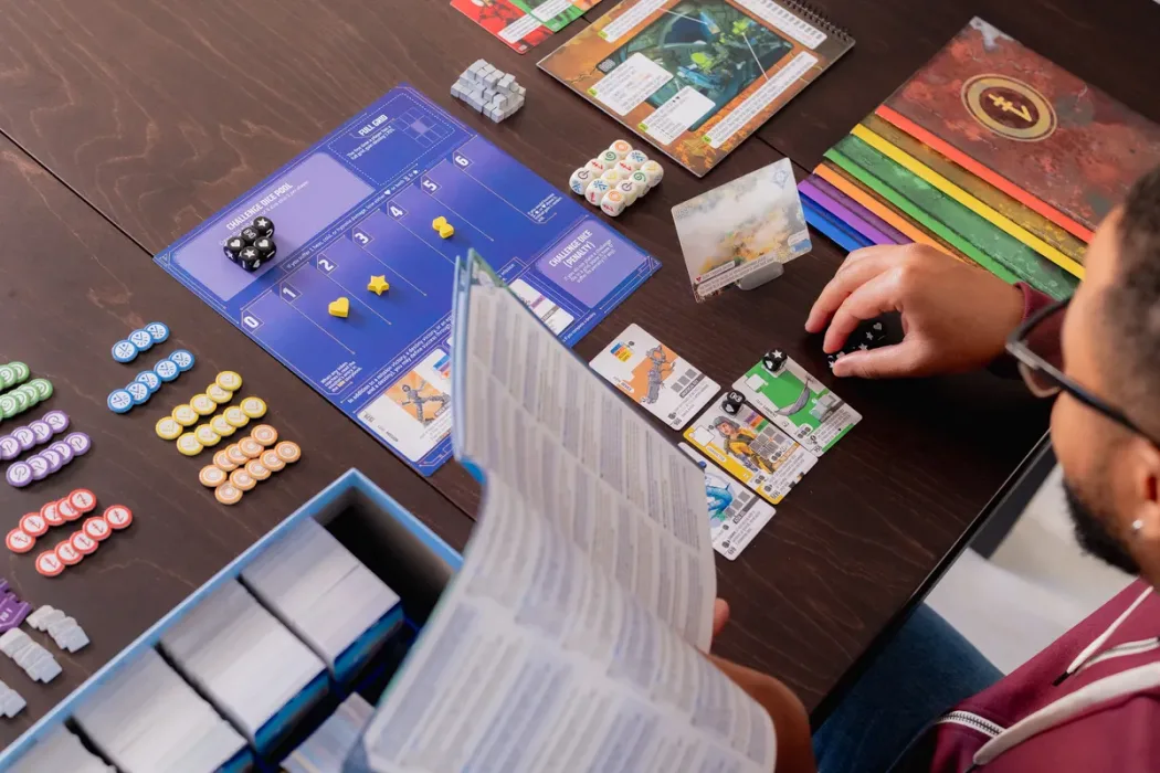 Vantage is not a campaign game. Each game is a standalone experience; you bring to future sessions only what you’ve learned about the world. It is completely self-contained with no expansions — just a few accessories like metal coins.