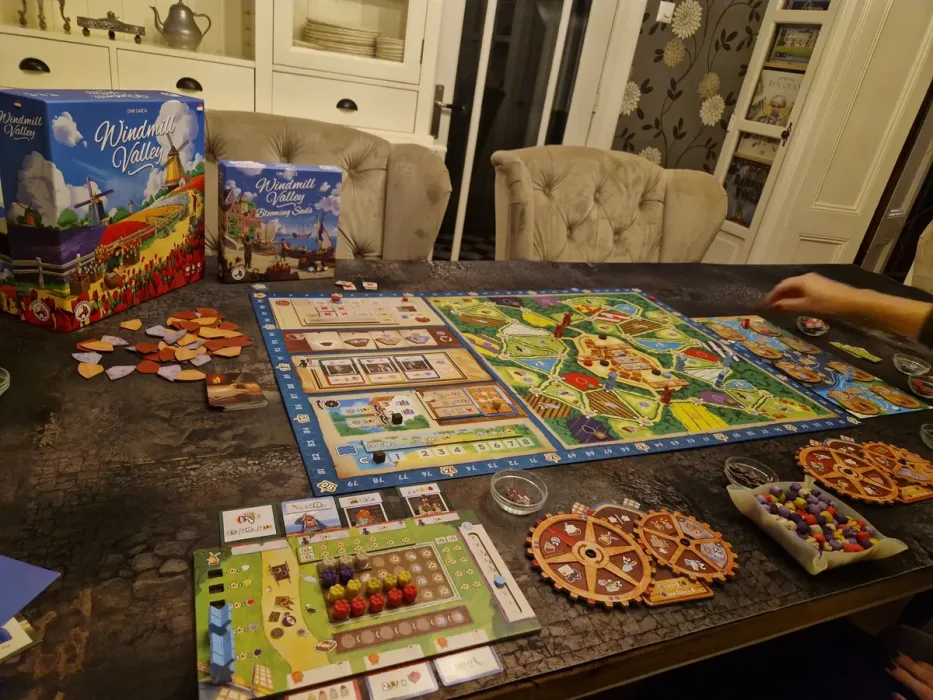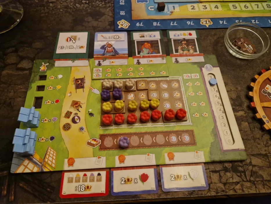 Windmill Valley: Blooming Sails significantly changes how the Conduct Foreign Trade action works. Players now sail with their Ship between ports and may spend their Tulip Bulbs for various rewards. Moreover, the position of their Ship determines the benefits they may gain when advancing on the Calendar. The Calendar is also updated and allows players to choose if they want to use the regular or expert variant.